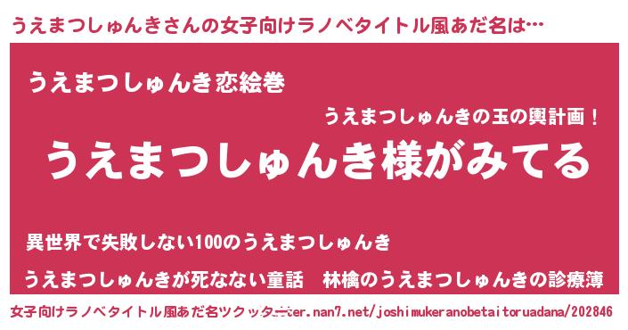 | 男性向けラノベタイトル風あだ名 | 『うえまつしゅんきの嫁は女の子じゃないと思った?』 |
