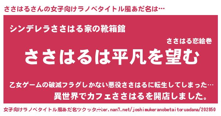 | 萌えアニメ | 主人公(ささはる)のあだ名『 ささささ』 |