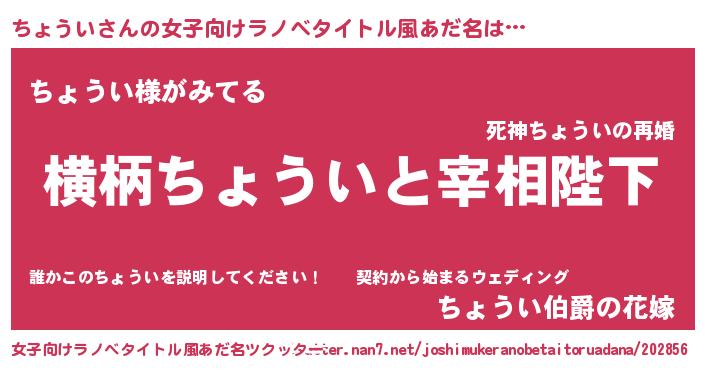 | 男性向けラノベタイトル風あだ名 | 『ちょういに滅ぼされるだけの簡単なお仕事です』 |