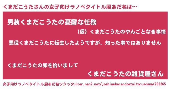 | 意味不明あだ名 | 『住所不定無職くまだこうた(4歳)』 |