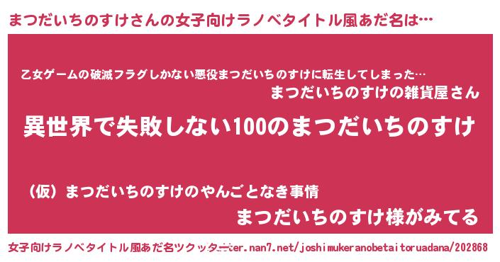 | 男性向けラノベタイトル風あだ名 | 『まつだいちのすけという概念が存在しない退屈な世界 』 |