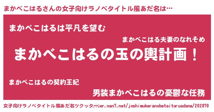 | ヘコむあだ名 | 『まかっぺ』『まかべこはる(小並感)』 |