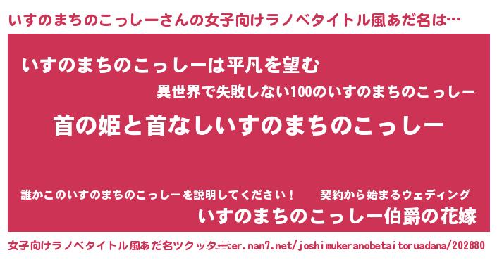 | 男性向けラノベタイトル風あだ名 | 『はたらくいすのまちのこっしーさま!』 |