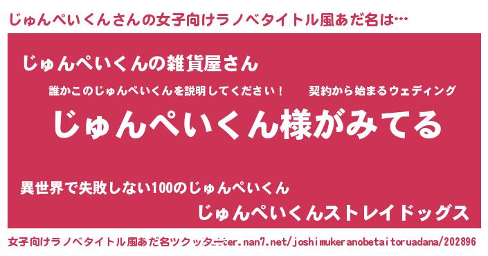 | 男性向けラノベタイトル風あだ名 | 『じゅんぺいくんの嫁は女の子じゃないと思った?』 |