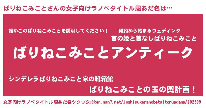 | 胡散臭い通販商品みたいなあだ名 | 『テレビで話題の高麗人参…その名も「ばりねこみこと」』 |