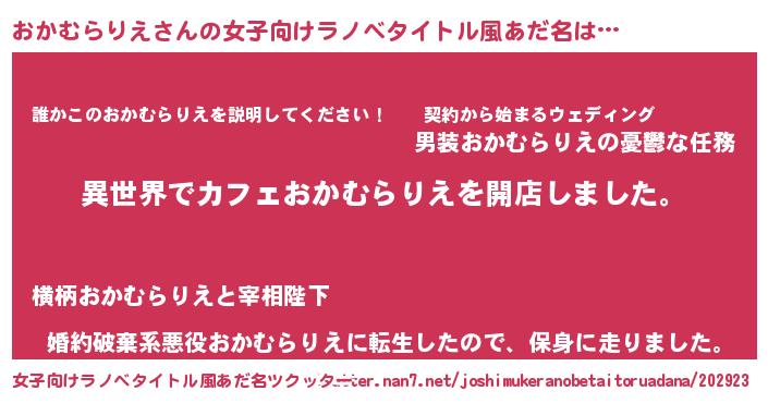 | 胡散臭い通販商品みたいなあだ名 | 『前代未聞の健康食品…その名も「おかむらりえ」』 |