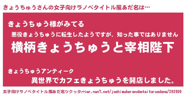 | 意味不明あだ名 | 『とにかく怪しいきょうちゅう』 |
