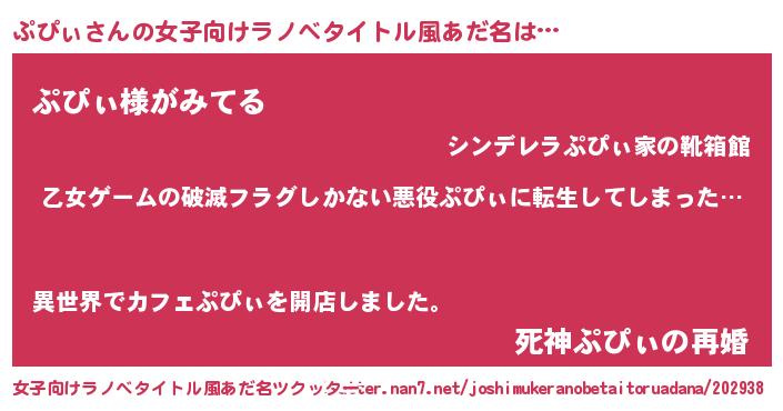 | ヘコむあだ名 | 『ぷぴを』『ぷぴぃ(笑)』『酢こんぶ』 |