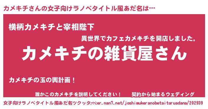 | 男性向けラノベタイトル風あだ名 | 『やはりカメキチの青春ラブコメはまちがっている 』 |