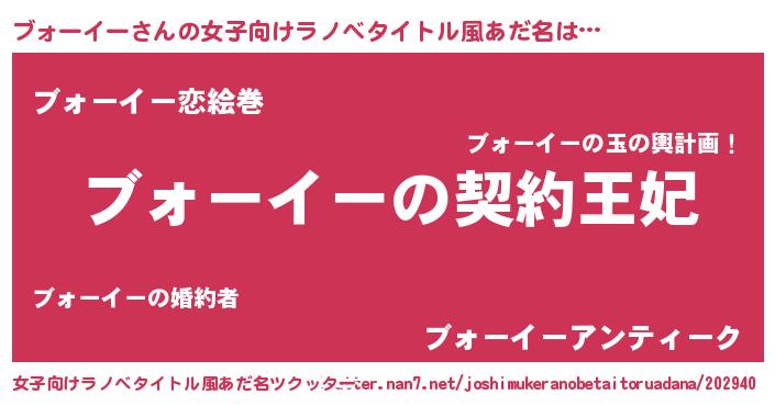 | 男性向けラノベタイトル風あだ名 | 『誰もが恐れるあのブォーイーが、ぼくの専属メイドになるようです。』 |
