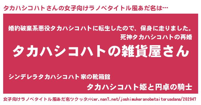 | ファンタジー風あだ名 | 『エターナルタカハシコハトー』 |