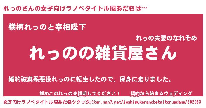 | 男性向けラノベタイトル風あだ名 | 『やはりれっのの青春ラブコメはまちがっている 』 |