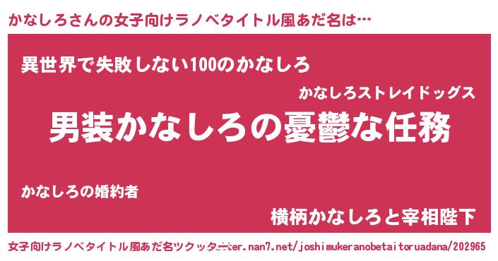 | 胡散臭い通販商品みたいなあだ名 | 『来世でも幸せになれる水素水…その名も「かなしろ」』 |