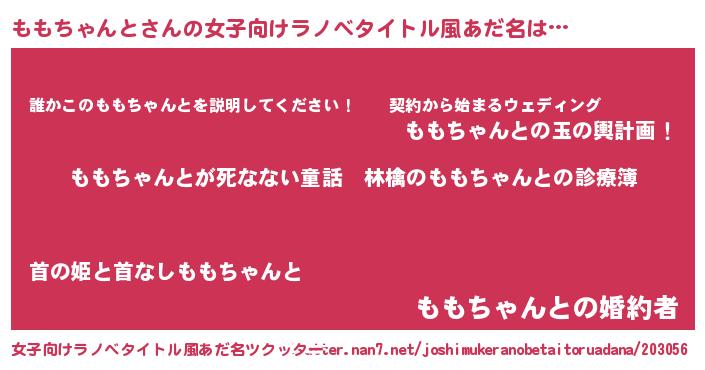 | 男性向けラノベタイトル風あだ名 | 『魔弾の王とももちゃんと』 |