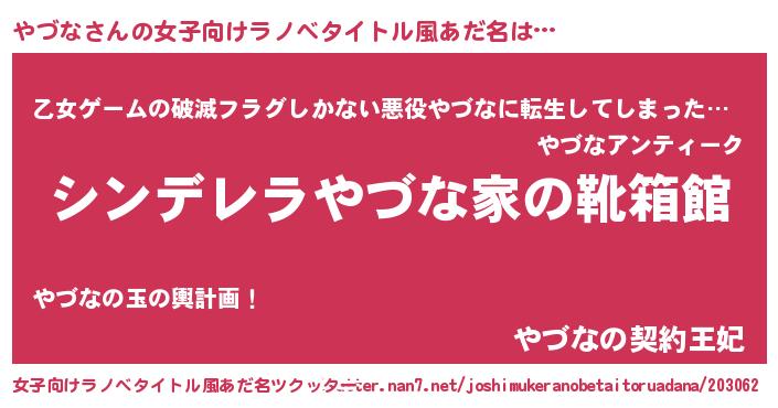 | 男性向けラノベタイトル風あだ名 | 『緋弾のヤヅナ』『魔法科高校のやづな』 |