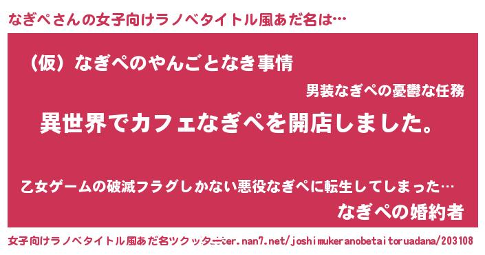 | 胡散臭い通販商品みたいなあだ名 | 『前代未聞の健康食品…その名も「なぎぺ」』 |