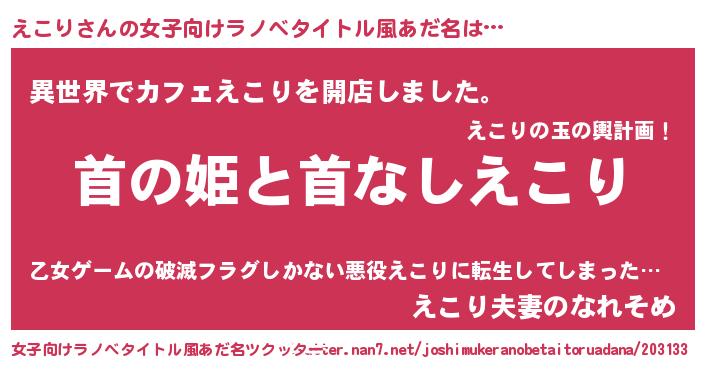 | 胡散臭い通販商品みたいなあだ名 | 『絶対に幸福をもたらす水素水…その名も「えこり」』 |