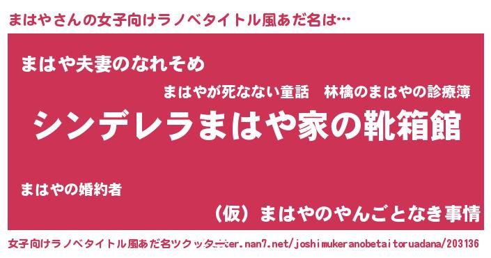 | 男性向けラノベタイトル風あだ名 | 『緋弾のマハヤ』『まはやの憂鬱』 |