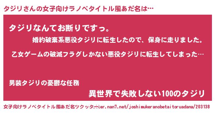 | 意味不明あだ名 | 『住所不定無職タジリ(14歳)』『自称タジリ』 |