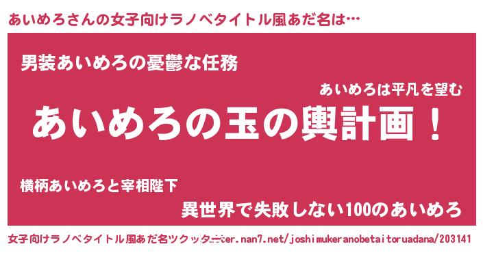 | 男性向けラノベタイトル風あだ名 | 『転生したらあいめろだった件』 |