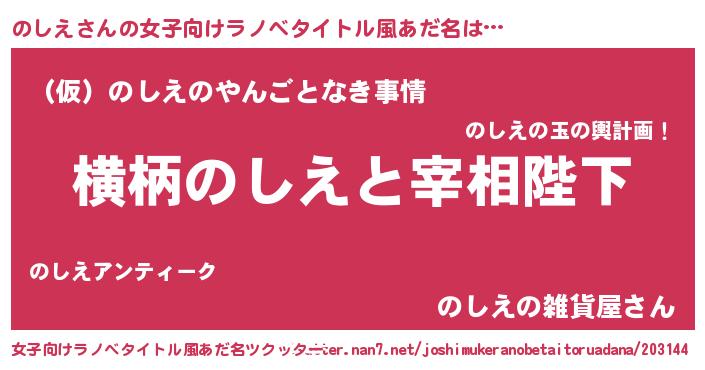 | 男性向けラノベタイトル風あだ名 | 『のしえに滅ぼされるだけの簡単なお仕事です』 |