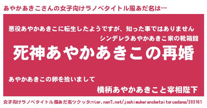 | 欧米人風あだ名 | 『ダニエルあやかあきこ』 |