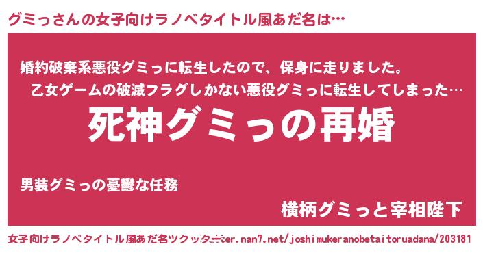 | 男性向けラノベタイトル風あだ名 | 『ノーゲーム・ノーグミッ』 |