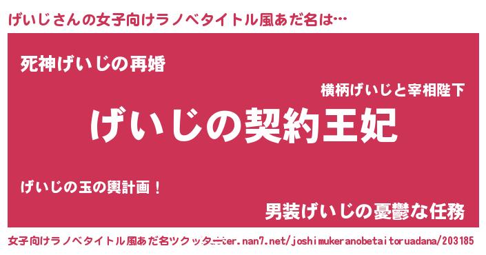 | 男性向けラノベタイトル風あだ名 | 『げいじという概念が存在しない退屈な世界 』 |