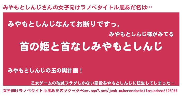 | 胡散臭い通販商品みたいなあだ名 | 『ガンによく効く高麗人参…その名も「みやもとしんじ」』 |