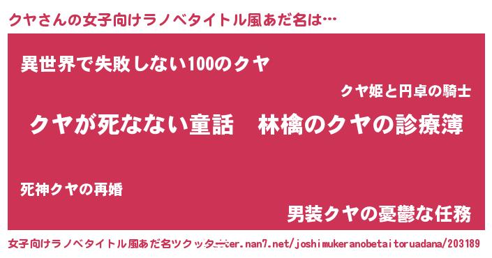 | 男性向けラノベタイトル風あだ名 | 『魔弾の王とクヤ』 |