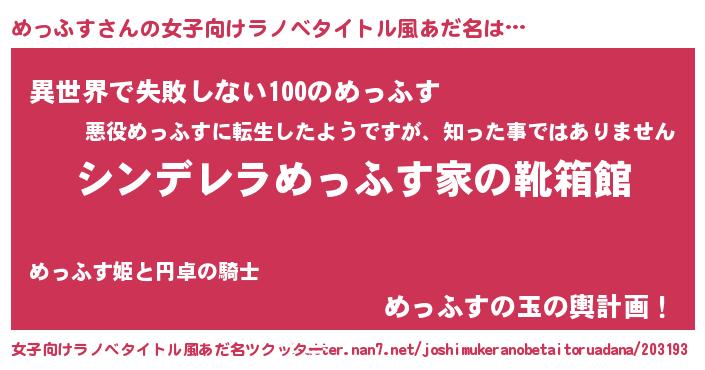 | 胡散臭い通販商品みたいなあだ名 | 『絶対に幸福をもたらす健康食品…その名も「めっふす」』 |