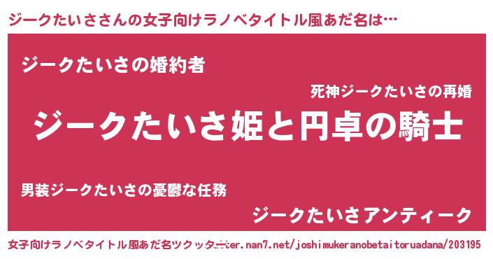 | 男性向けラノベタイトル風あだ名 | 『ジークたいさの憂鬱』 |