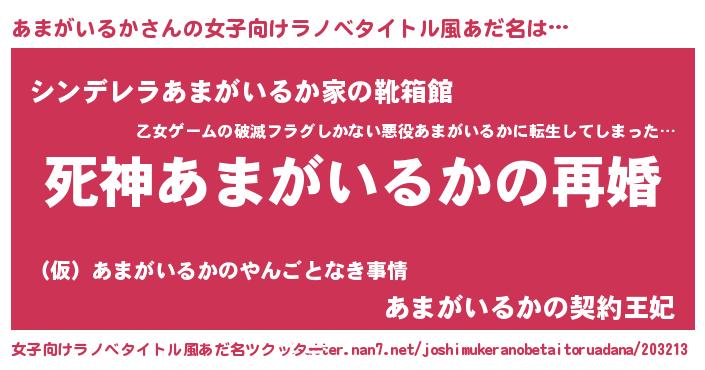 | 男性向けラノベタイトル風あだ名 | 『ノーゲーム・ノーアマガイルカ』 |