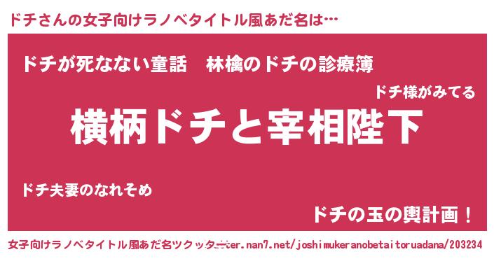 | 胡散臭い通販商品みたいなあだ名 | 『あなたにだけ特別に提供する100年もののヴィンテージワイン…その名も「ドチ」』 |
