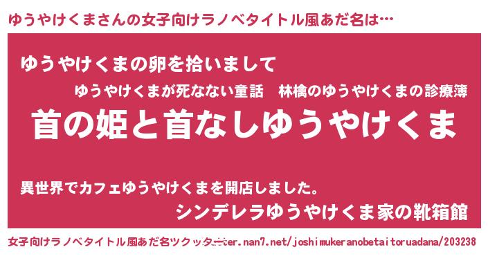 | 男性向けラノベタイトル風あだ名 | 『はたらくゆうやけくまさま!』 |