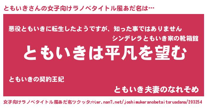 | 胡散臭い通販商品みたいなあだ名 | 『信頼と実績のサプリメント…その名も「ともいき」』 |