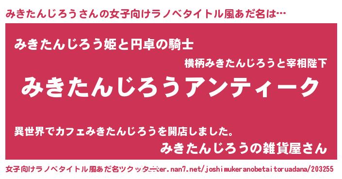 | 意味不明あだ名 | 『自称みきたんじろう』 |