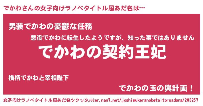| 男性向けラノベタイトル風あだ名 | 『誰もが恐れるあのでかわが、ぼくの専属メイドになるようです。』 |