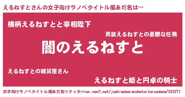 | 肩書あだ名 | 『えるねすと総統』『えるねすと社長』 |
