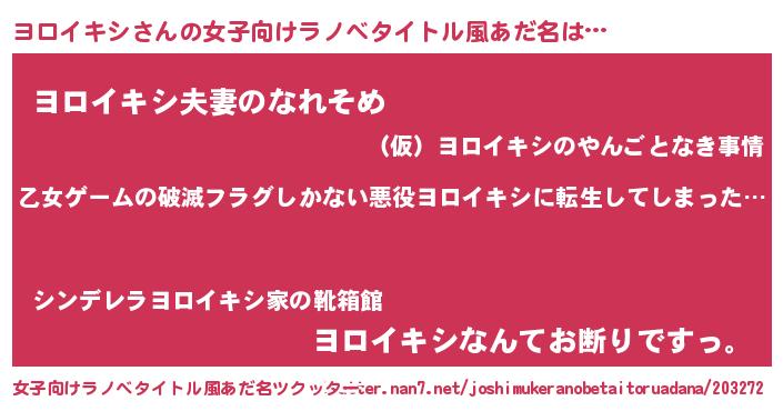 | 意味不明あだ名 | 『住所不定無職ヨロイキシ(8歳)』 |