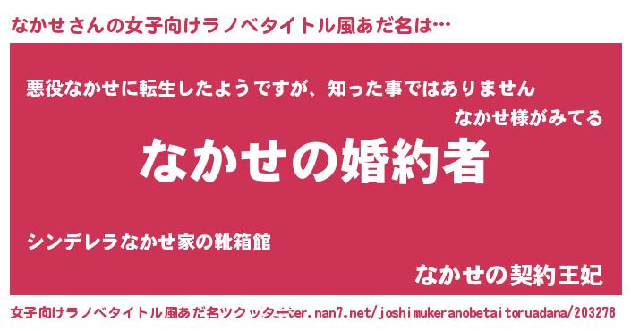 | 胡散臭い通販商品みたいなあだ名 | 『運命の人と巡り会える高級そうな絵画…その名も「なかせ」』 |