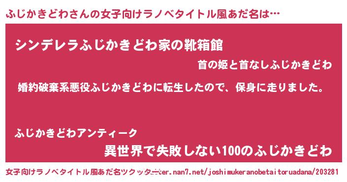 | 料理風あだ名 | 『ふじかきどわごはん』 |