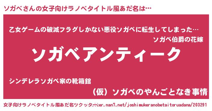 | 恥ずかしいあだ名 | 『ソガベデラックス』『プリティーソガベ』 |