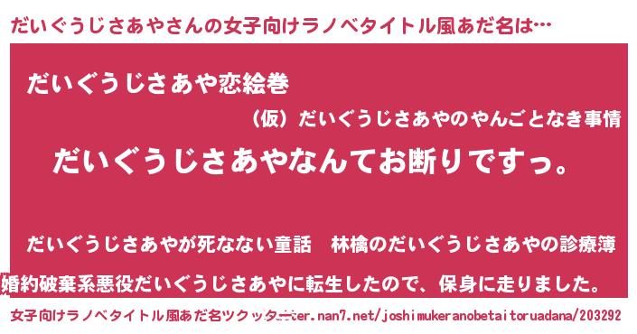 | 意味不明あだ名 | 『自称だいぐうじさあや』 |