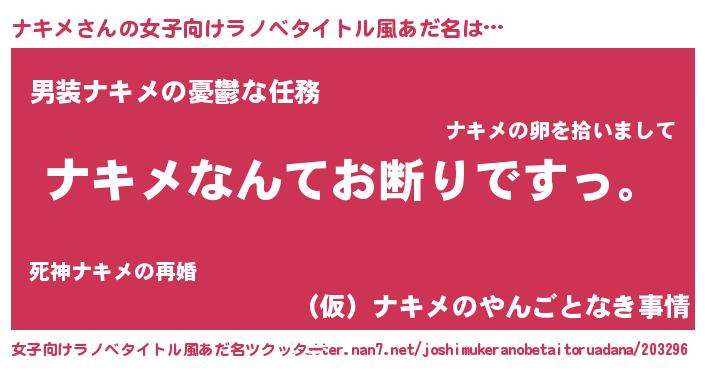 | 男性向けラノベタイトル風あだ名 | 『魔法科高校のナキメ』『ナキメの憂鬱』 |