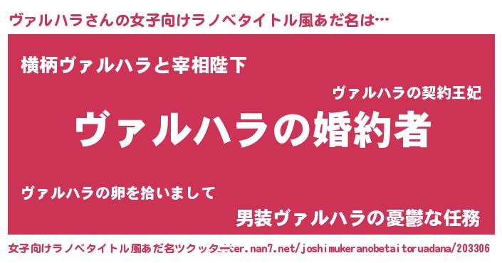 | 胡散臭い通販商品みたいなあだ名 | 『運命の人と巡り会える高級そうな絵画…その名も「ヴァルハラ」』 |