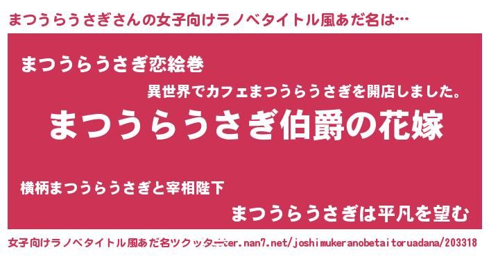 | 意味不明あだ名 | 『まつうらうさぎフォーエバー』 |