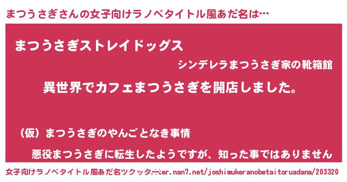 | 胡散臭い通販商品みたいなあだ名 | 『前代未聞の健康食品…その名も「まつうさぎ」』 |