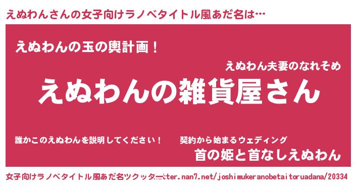| 男性向けラノベタイトル風あだ名 | 『やはりえぬわんの青春ラブコメはまちがっている 』 |