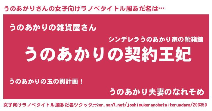 | 意味不明あだ名 | 『永久保存うのあかり』『自称うのあかり』 |